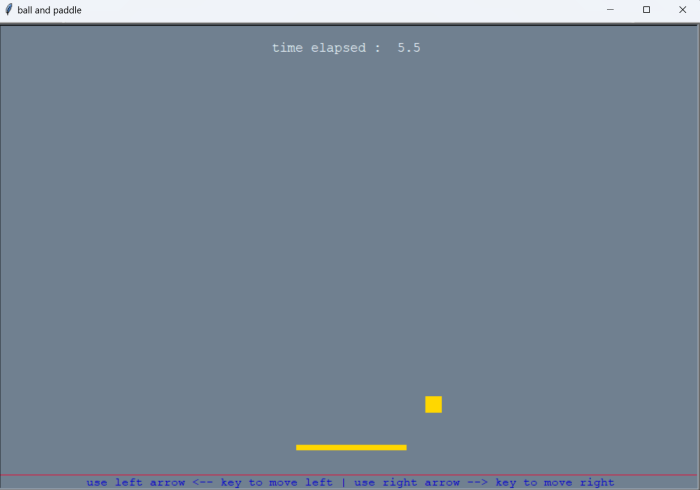 Use the paddle to bounce the ball and keep it in play for as long as possible. Ball speed increases periodically to make the task harder.